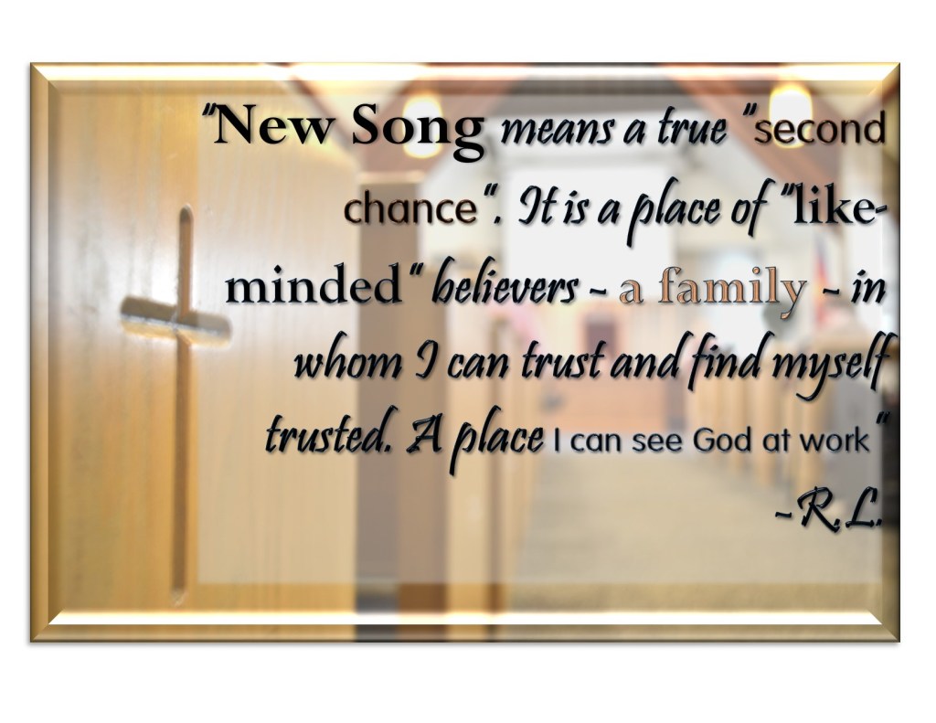 The idea of community and helping one another is what New Song Ministries is attempting to do through our Sunday night fellowship, which occurs after our church service at The Salvation Army. We have a time of encouraging one another, praying for each other, and networking regarding job opportunities and housing that may be available. New Song Ministries wants to help our clients to have changed lives through Jesus Christ.